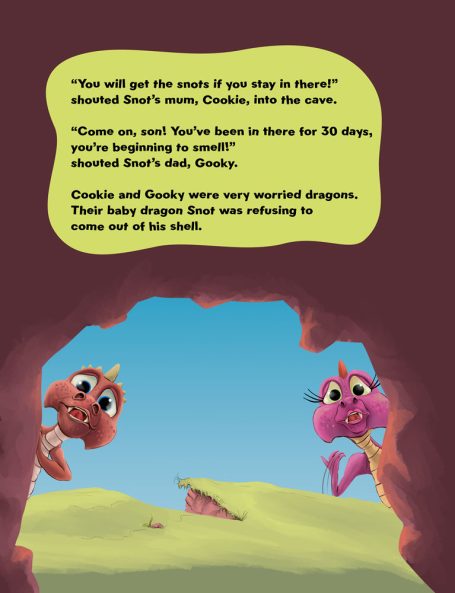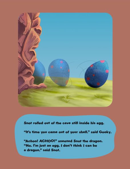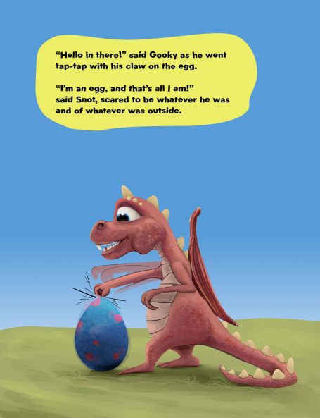 When Snot the Dragon refuses to come out of his shell because he’s afraid and thinks he’s just an egg,
